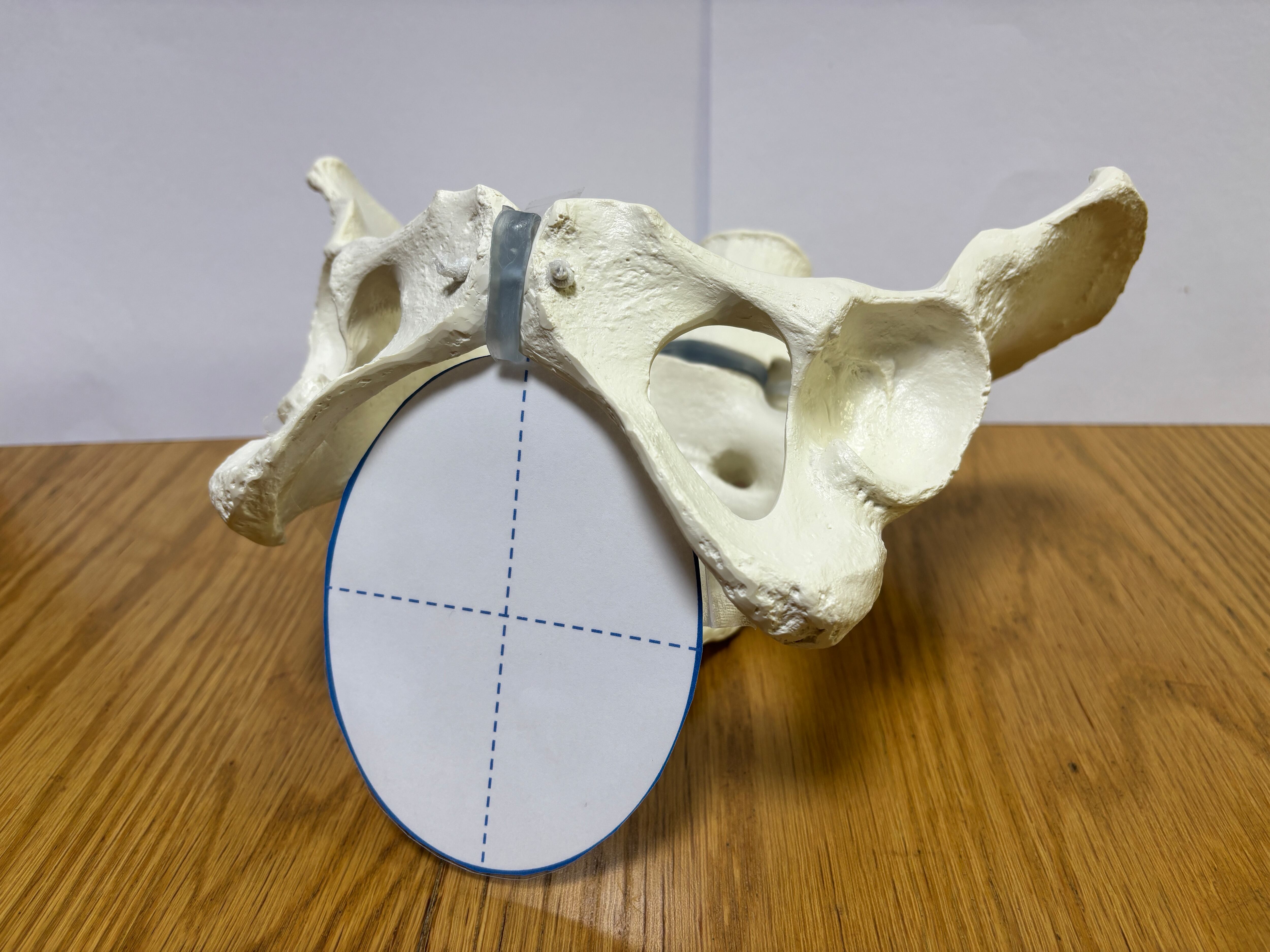 骨盤回旋説明用胎児模型の頭部と合わせて見せるとよりわかりやすいです。